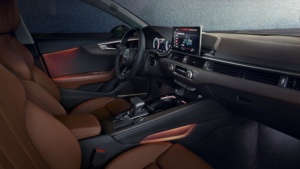 감각적인 실내 공간.뛰어난 공간감, 그 이상을 보여줍니다. 더 넓어진 실내 덕분에, 온 가족의 레저 활동에 필요한 충분한 적재 공간을 제공합니다. 너른 공간감은 수평으로 배치된 다양한 디자인 요소, 새롭게 디자인된 센터 콘솔, 글래스룩 도어 트림으로 강조됩니다. S 라인 디자인 패키지는 실내에 한층 더 또렷한 개성을 더합니다. 최첨단 인포테인먼트 시스템과 앰비언트 라이팅은 아우디 A5 쿠페의 인테리어에 진보적인 우아함을 더해줍니다.